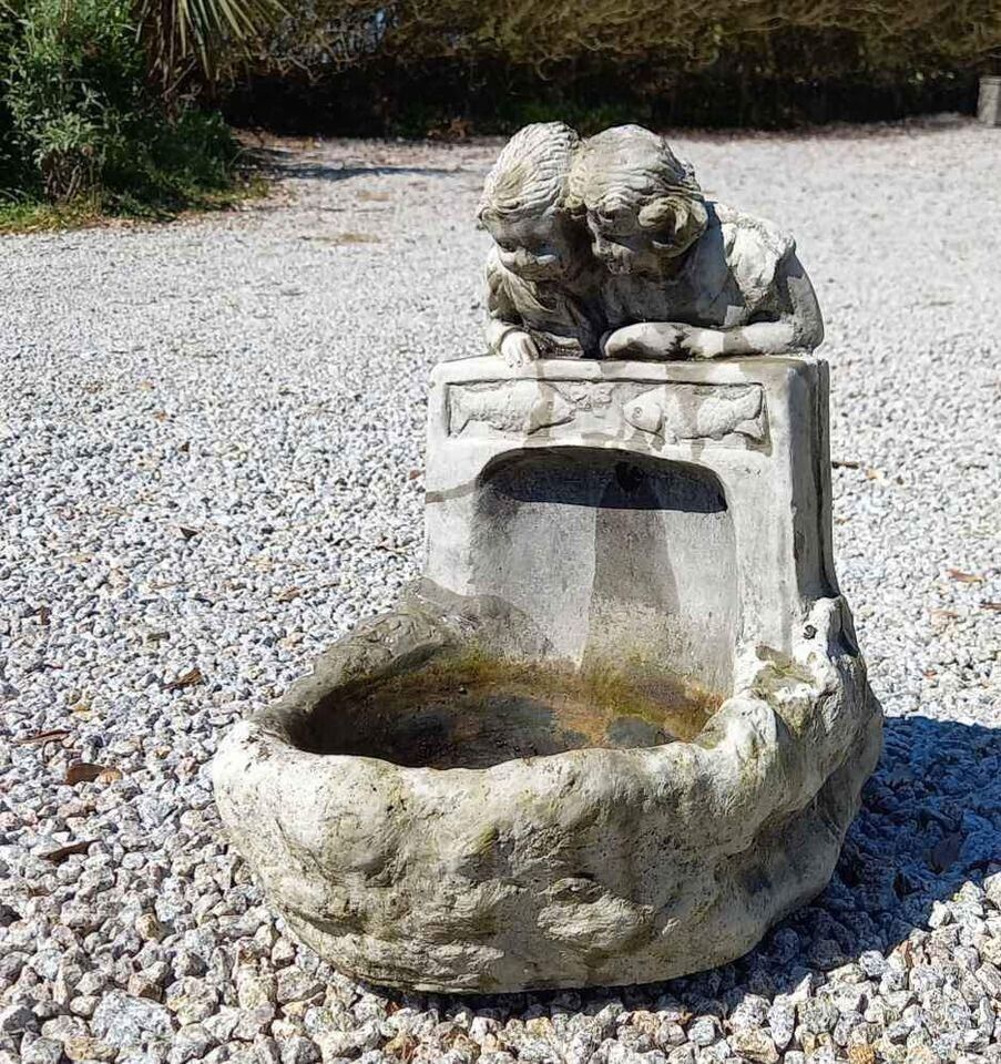 Small Water Garden Feature Or Conservatory Water Feature depicting and boy & a girl looking over the top of the water feature a charming addition to the garden or a wonderful charming feature to the conservatory.
